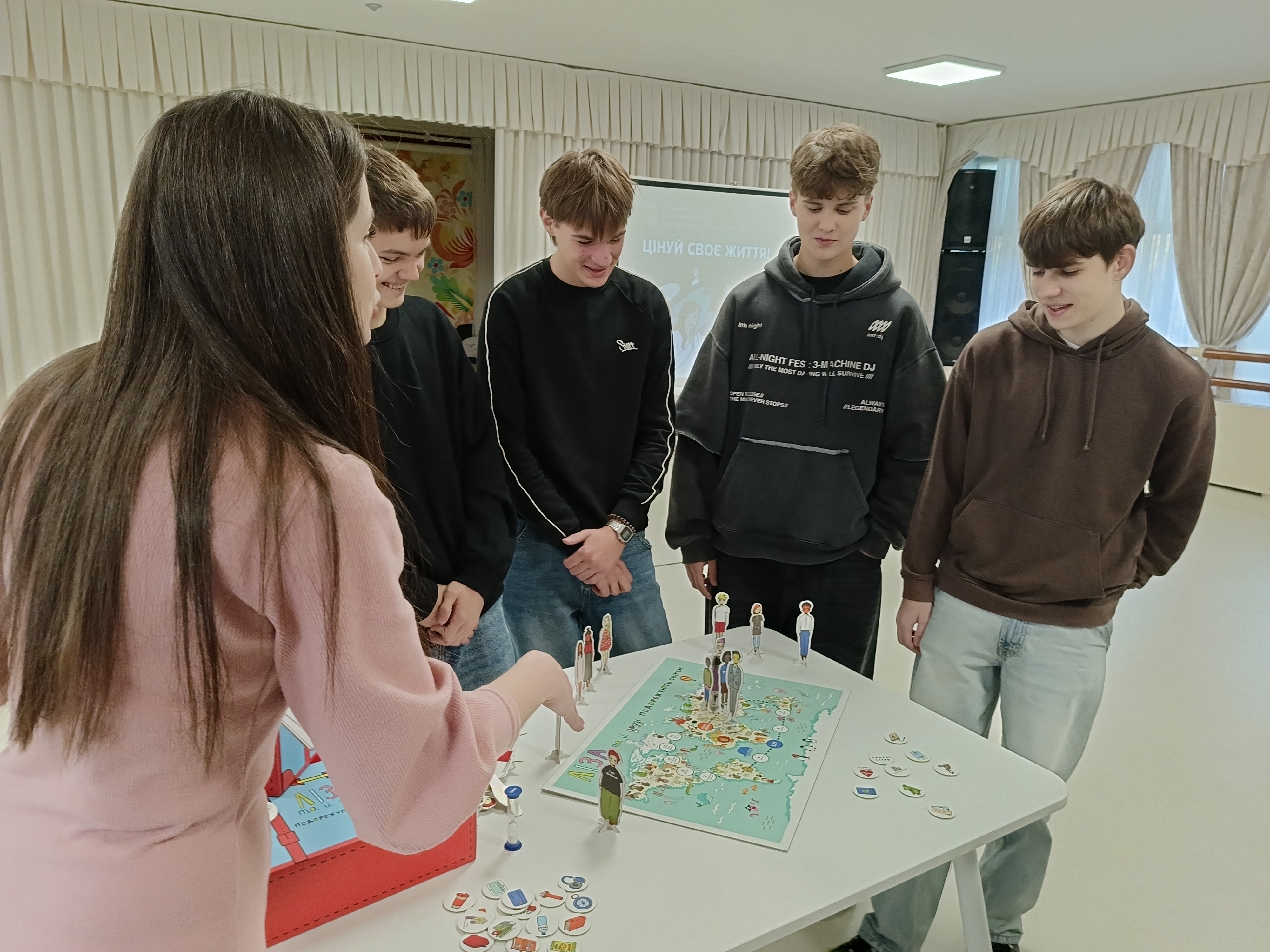 За сприяння заступника директора з виховної роботи Альони Поліщук та психолога Наталії Темненко, 22 жовтня, у Білій Залі Міського культурно-спортивного центру Житомирської міської ради відбувся захід «Ціна твого життя», присвячений Європейському дню з протидії торгівлі людьми. В рамках заходу пройшла пізнавальна лекція, де було проінформовано студентів щодо необхідних правил безпеки, навчання та роботи за кордоном, як подорожувати безпечно та про шляхи запобігання торгівлі людьми, правову підтримку постраждалих, а також методи виявлення потенційних ризиків. Особливу увагу приділили темі захисту дітей і молоді, які є однією з найуразливіших груп. Отриманий теоретичний матеріал закріпили чудовою настільною грою «Ліза та її друзі подорожують світом», де учасники здійснили свою першу навколосвітню подорож ! Ми віримо, що цей захід допоможе залучити ще більше людей до активної боротьби з торгівлею людьми та підвищить рівень обізнаності про цю проблему!