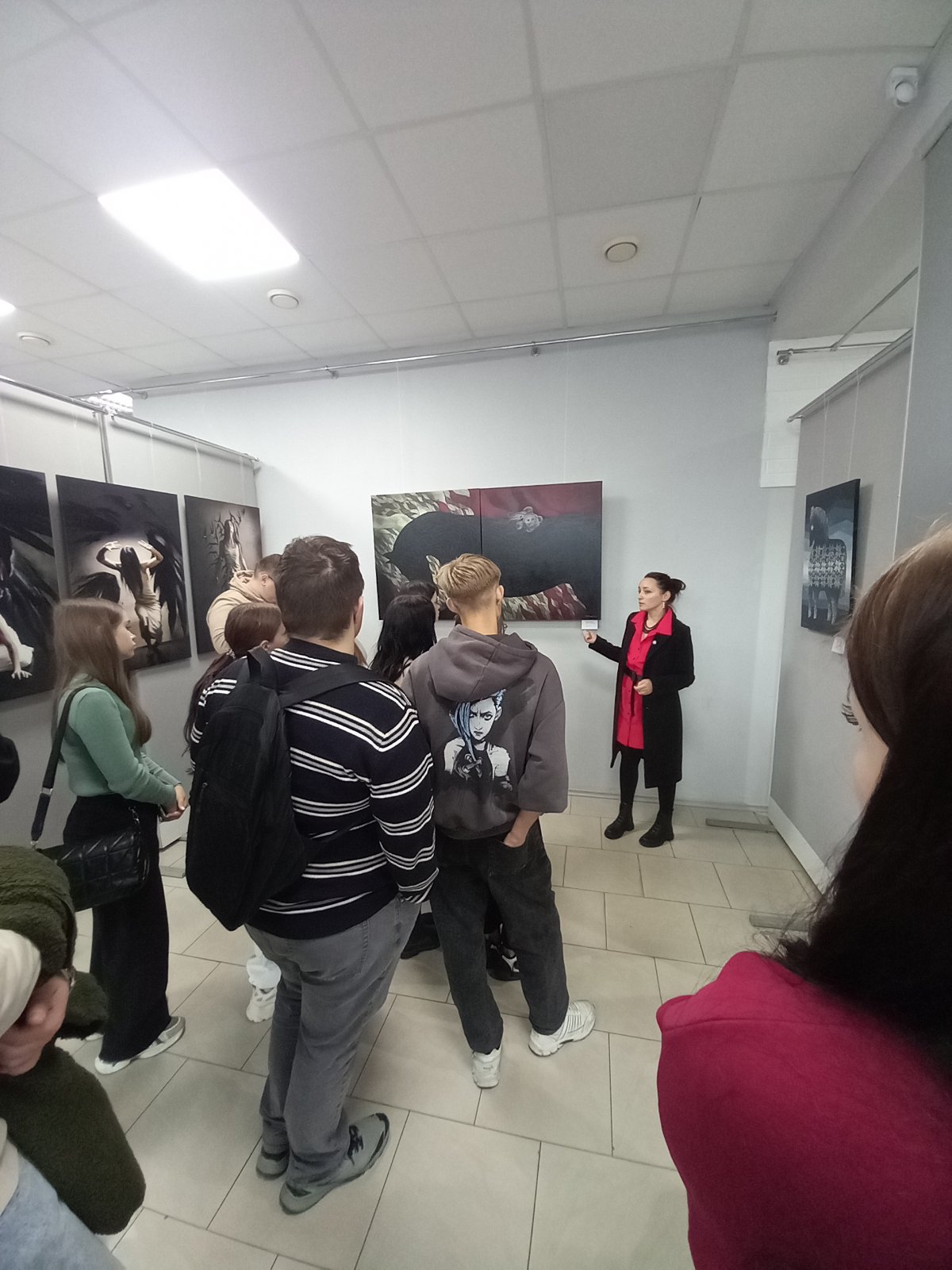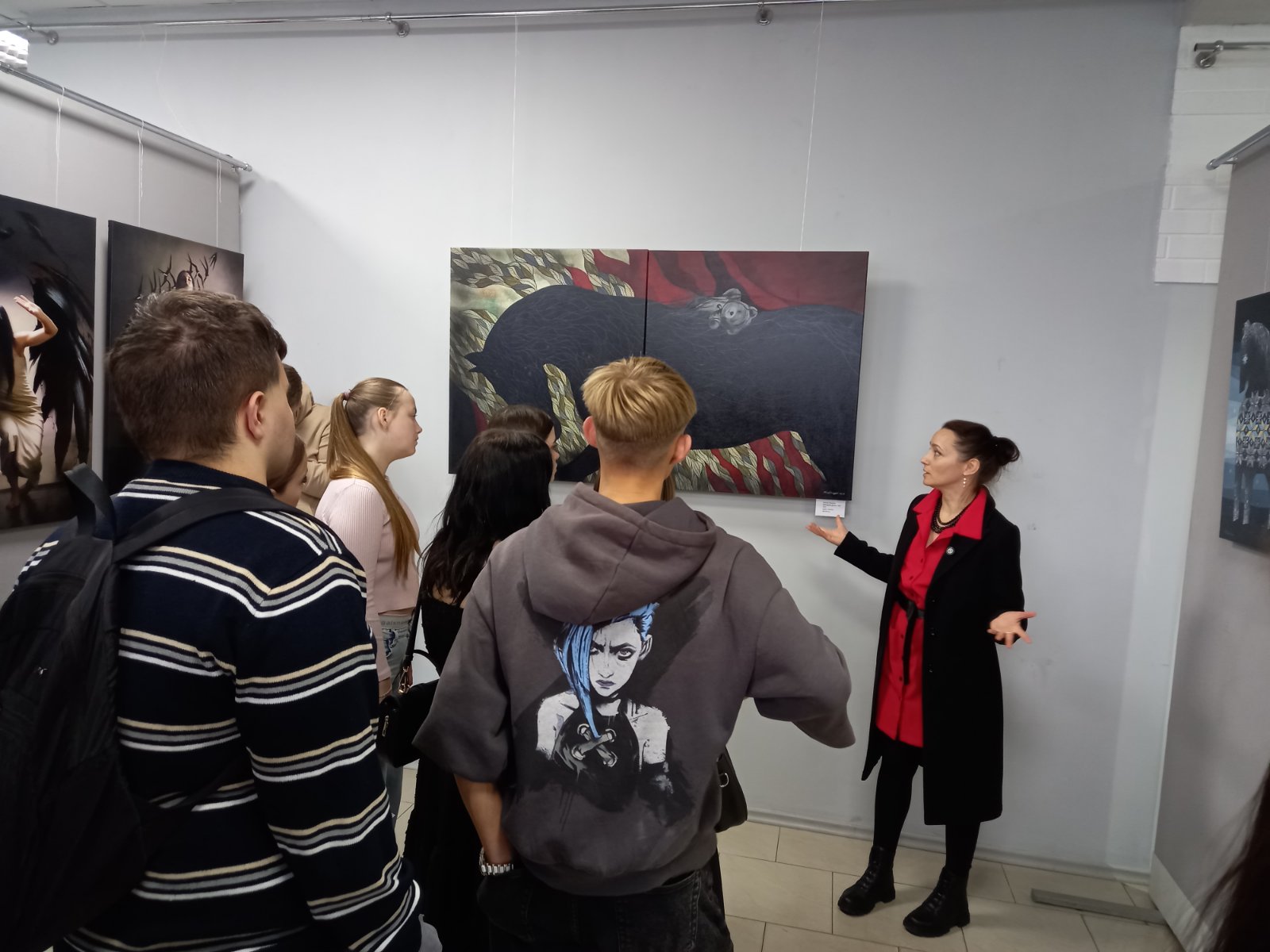 14 жовтня 2025 року студенти ОПП "Товарознавство у митній справі" та ОПП "Товарознавство і комерційна логістика" з ініціативи викладача мистецтва к.і.н. Панченко Вікторії Сергіївни у рамках вивчення курсу Історія світової та української культури відвідали Житомирську галерею «Гнатюк Арт Центр», де відбулася творча зустріч із талановитою художницею Наталією Мощенко. Подія стала справжньою подією у культурному житті студентської молоді. Пані Наталія презентувала свою нову виставку під назвою «М06», що вразила глядачів глибиною змісту та яскравими образами. Роботи мисткині поєднують експресію сучасного мистецтва з філософським осмисленням реальності. Під час зустрічі художниця розповіла про свій творчий шлях і процес створення виставки. Вона поділилася ідеями, які лягли в основу її нових полотен. Студенти із зацікавленням слухали розповідь і ставили численні запитання. Особливу увагу привернула тема пошуку власного стилю та самовираження в мистецтві. Авторка наголосила на важливості щирості й внутрішнього діалогу у творчості. Учасники заходу мали змогу особисто поспілкуватися з художницею після офіційної частини. Зустріч пройшла в теплій і натхненній атмосфері. Галерея «Гнатюк Арт Центр» створила чудові умови для спілкування та споглядання мистецтва. Виставка «М06» викликала жваві емоції та глибокі роздуми. Багато студентів зазначили, що цей захід став для них джерелом натхнення. Вони відкрили для себе нові грані сучасного українського мистецтва. Твори Наталії Мощенко спонукали замислитися над темами краси, гармонії та людських переживань. Така зустріч довела, що мистецтво здатне поєднувати покоління та надихати на творчі пошуки. Студенти подякували художниці за щирість, відвертість і можливість доторкнутися до світу її емоцій. Захід став ще одним підтвердженням важливості діалогу між митцем і молоддю. Зустріч із Наталією Мощенко залишила яскравий слід у серцях усіх присутніх.