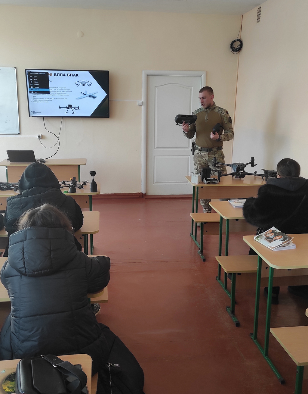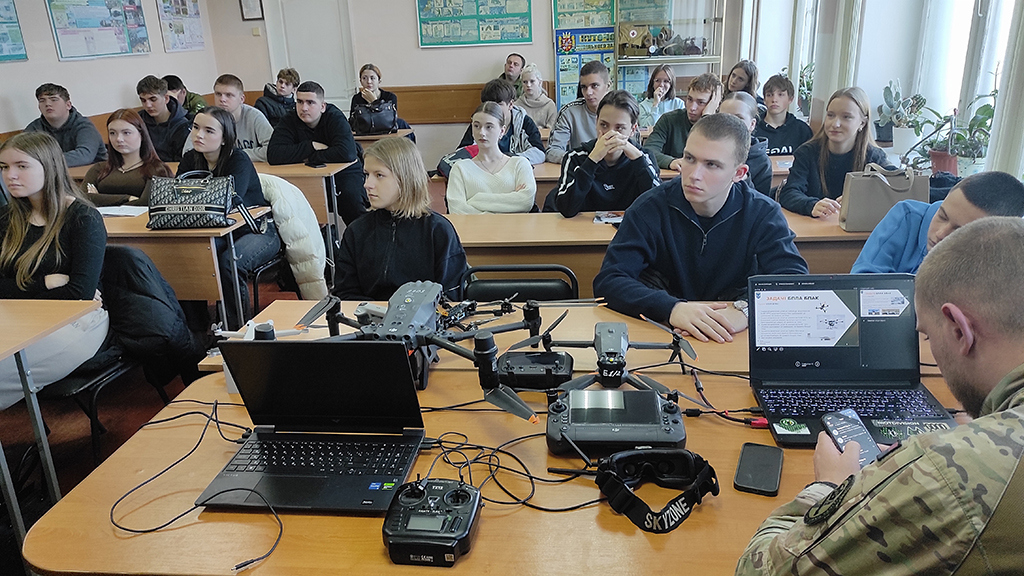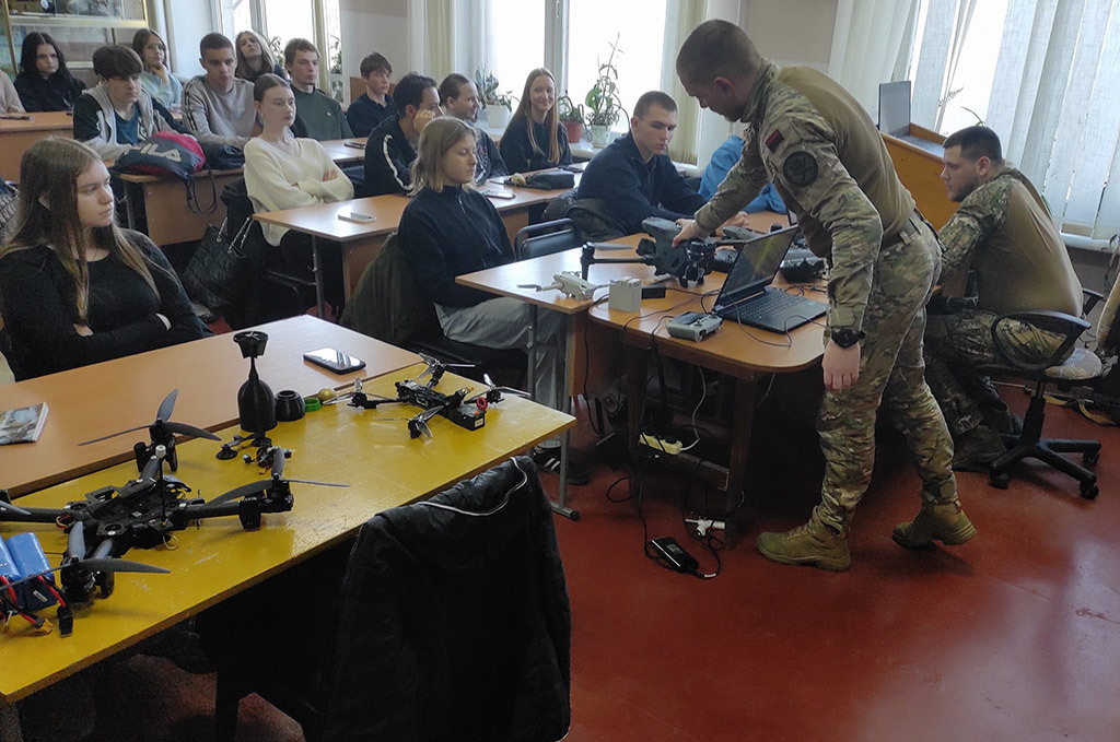 19 листопада наш коледж відвідали офіцери – командири підрозділів безпілотних систем 115 бригади територіальної оборони Житомирської області. Під час невимушеного, дружнього спілкування зі студентами – майбутніми правознавцями та правоохоронцями, вони запросили студентів-випускників доєднатися до Сил оборони у складі 115ОБрТрО на посадах штурмовиків або операторів БПЛА, розказали про умови служби та побуту. Студенти побачили бойову роботу наших воїнів під Бахмутом, застосування безпілотників-розвідників та ударних FPV-дронів на лінії бойового зіткнення та під час прикриття північного кордону нашого регіону.