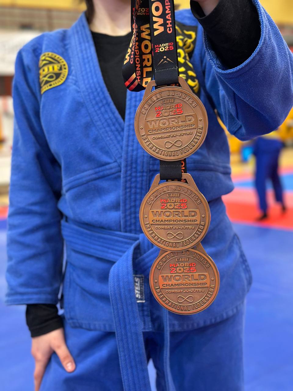 Надзвичайно приємно ділитися новинами про яскраві спортивні успіхи студентської молоді! Студентка ОПП «Товарознавство у митній справі» групи ТМС-21 ВСП "Житомирський торговельно-економічний фаховий коледж ДТЕУ" Артюх Анастасія Сергіївна — повернулася з Чемпіонату світу з Комбат Дзю-Дзюцу з трьома бронзовими медалями, гідно представивши Україну у складі національної збірної! Чемпіонат світу 2025 проходив з 26 листопада по 1 грудня в сонячному та гостинному Мадриді (Іспанія). Участь взяли найсильніші спортсмени світу, що змагалися у трьох складних та видовищних розділах: • Граунд-файт — боротьба з колін, де особливу роль відіграють техніка контролю та швидкість переходів; • Клоуз-контакт — жорсткі поєдинки у стійці з ударами колін, кидками, больовими й задушливими прийомами; • Фулл-контакт — максимальна динаміка та витривалість: удари руками і ногами в стійці та партері, складні больові та задушливі техніки. Попри високу конкуренцію серед дорослих спортсменок у ваговій категорії +68 кг, Анастасія проявила себе як зріла, вольова та технічно підготовлена бійчиня, продемонструвавши свої силу, вміння та неймовірну витримку. Її три впевнені «бронзи» — це результат багаторічної самовідданої праці, щоденних тренувань, сили духу та віри у свої можливості. Досягнення Анастасії — це не лише її особиста перемога, а й вагомий внесок у спортивний імідж коледжу та всієї України на міжнародній арені. Ми віримо, що попереду — нові вершини, нові чемпіонати і нові перемоги! Вітаємо нашу спортсменку та бажаємо натхнення, здоров’я й нових успіхів!