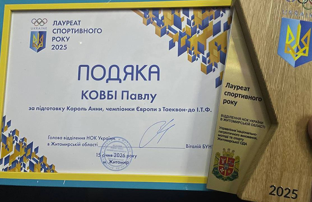 На початку 2026 року в Житомирі відбулися урочисті церемонії, де відзначили кращих тренерів громади та області, чиї вихованці у 2025 році показали високі результати на всеукраїнських та міжнародних змаганнях. Серед них наш викладач — Павло Ковба, тренер ДЮСШ «Спартак», наставник Анни Король, чемпіонки Європи з Таеквон-до ІТF.