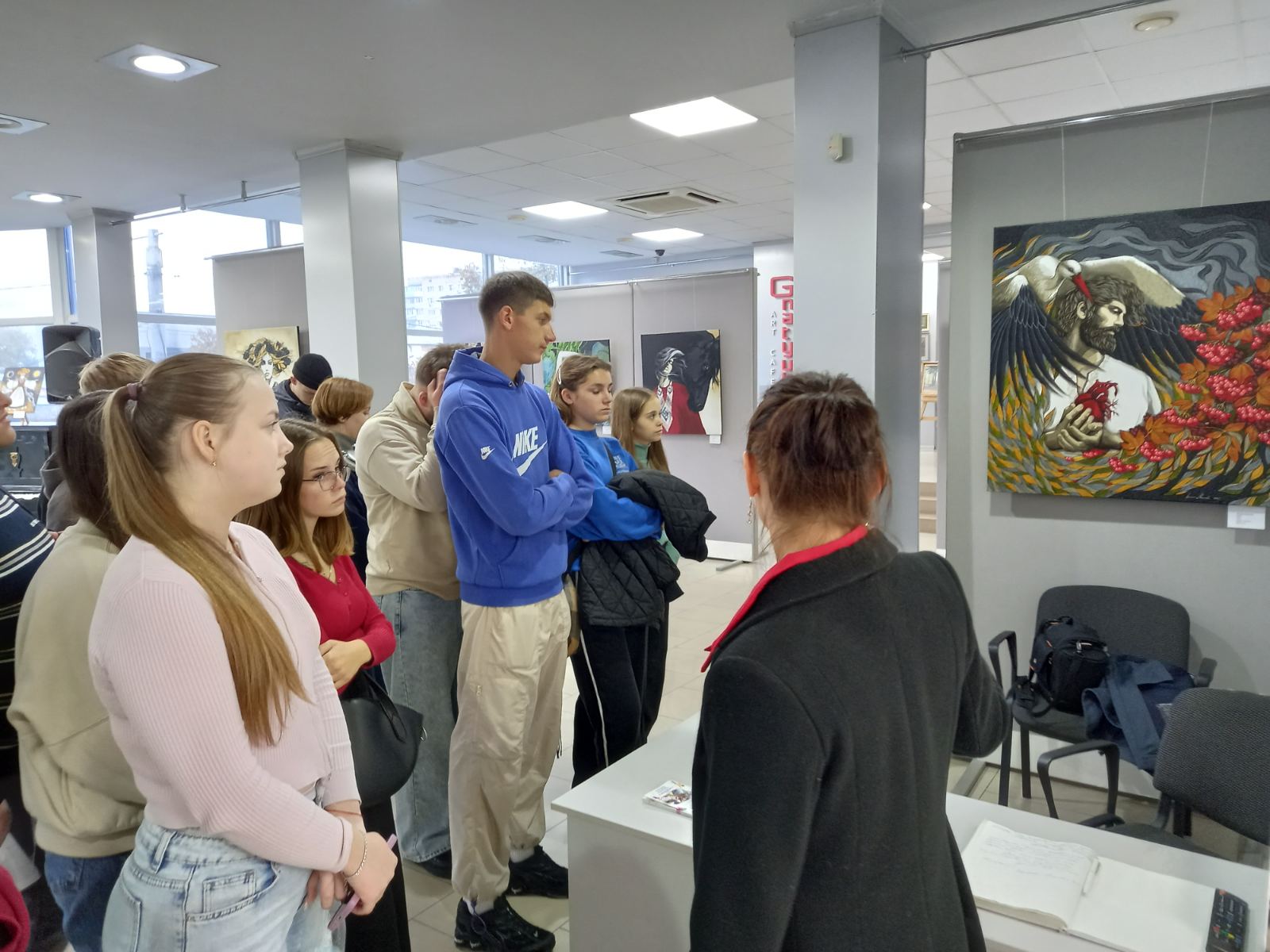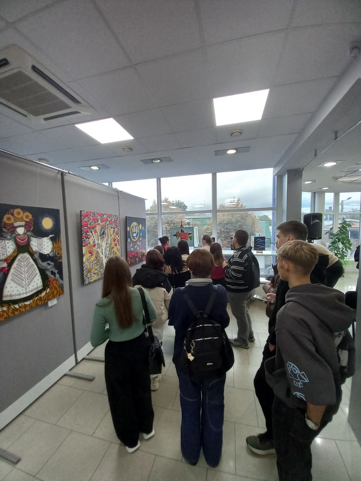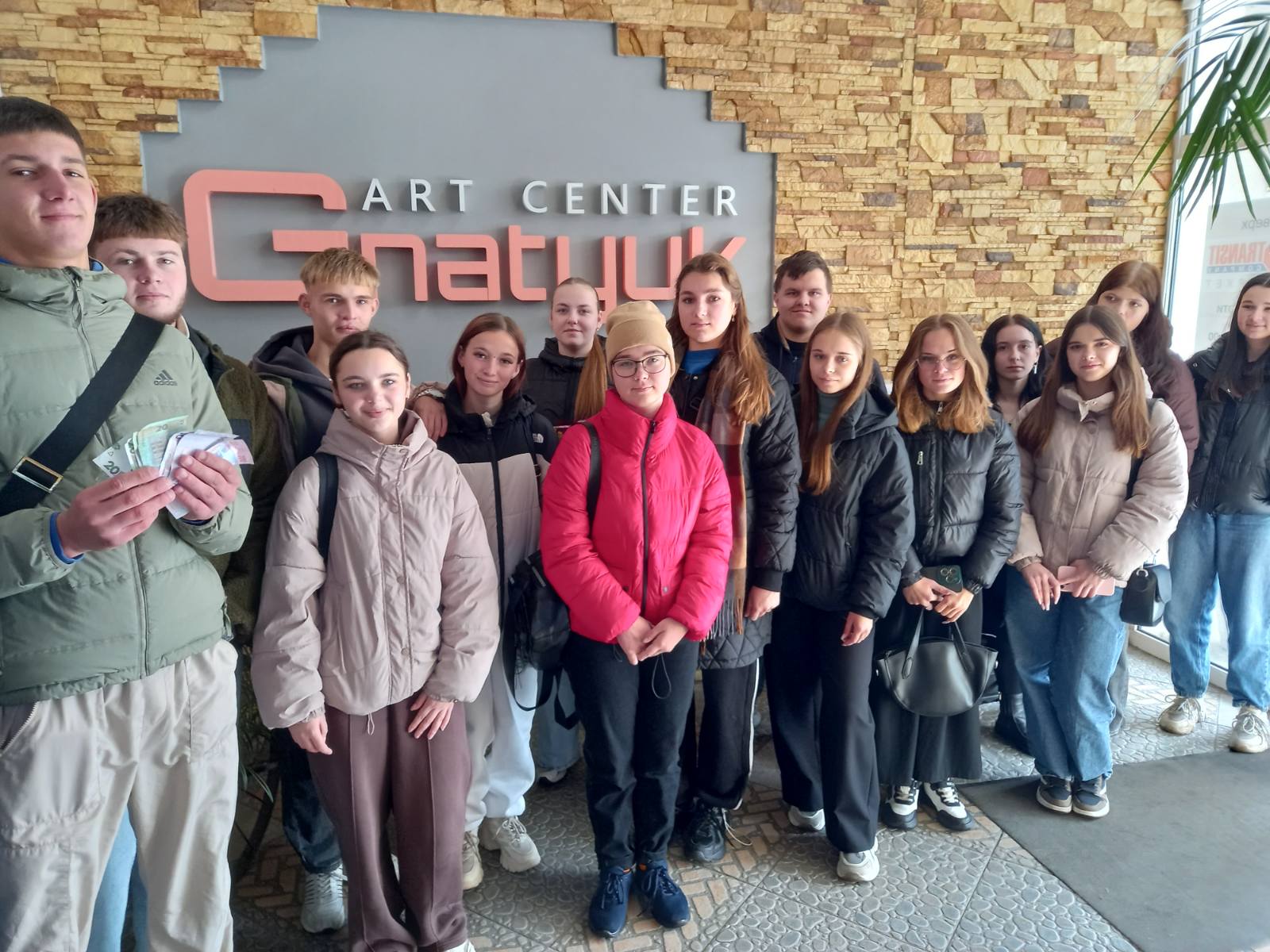 14 жовтня 2025 року студенти ОПП "Товарознавство у митній справі" та ОПП "Товарознавство і комерційна логістика" з ініціативи викладача мистецтва к.і.н. Панченко Вікторії Сергіївни у рамках вивчення курсу Історія світової та української культури відвідали Житомирську галерею «Гнатюк Арт Центр», де відбулася творча зустріч із талановитою художницею Наталією Мощенко. Подія стала справжньою подією у культурному житті студентської молоді. Пані Наталія презентувала свою нову виставку під назвою «М06», що вразила глядачів глибиною змісту та яскравими образами. Роботи мисткині поєднують експресію сучасного мистецтва з філософським осмисленням реальності. Під час зустрічі художниця розповіла про свій творчий шлях і процес створення виставки. Вона поділилася ідеями, які лягли в основу її нових полотен. Студенти із зацікавленням слухали розповідь і ставили численні запитання. Особливу увагу привернула тема пошуку власного стилю та самовираження в мистецтві. Авторка наголосила на важливості щирості й внутрішнього діалогу у творчості. Учасники заходу мали змогу особисто поспілкуватися з художницею після офіційної частини. Зустріч пройшла в теплій і натхненній атмосфері. Галерея «Гнатюк Арт Центр» створила чудові умови для спілкування та споглядання мистецтва. Виставка «М06» викликала жваві емоції та глибокі роздуми. Багато студентів зазначили, що цей захід став для них джерелом натхнення. Вони відкрили для себе нові грані сучасного українського мистецтва. Твори Наталії Мощенко спонукали замислитися над темами краси, гармонії та людських переживань. Така зустріч довела, що мистецтво здатне поєднувати покоління та надихати на творчі пошуки. Студенти подякували художниці за щирість, відвертість і можливість доторкнутися до світу її емоцій. Захід став ще одним підтвердженням важливості діалогу між митцем і молоддю. Зустріч із Наталією Мощенко залишила яскравий слід у серцях усіх присутніх.