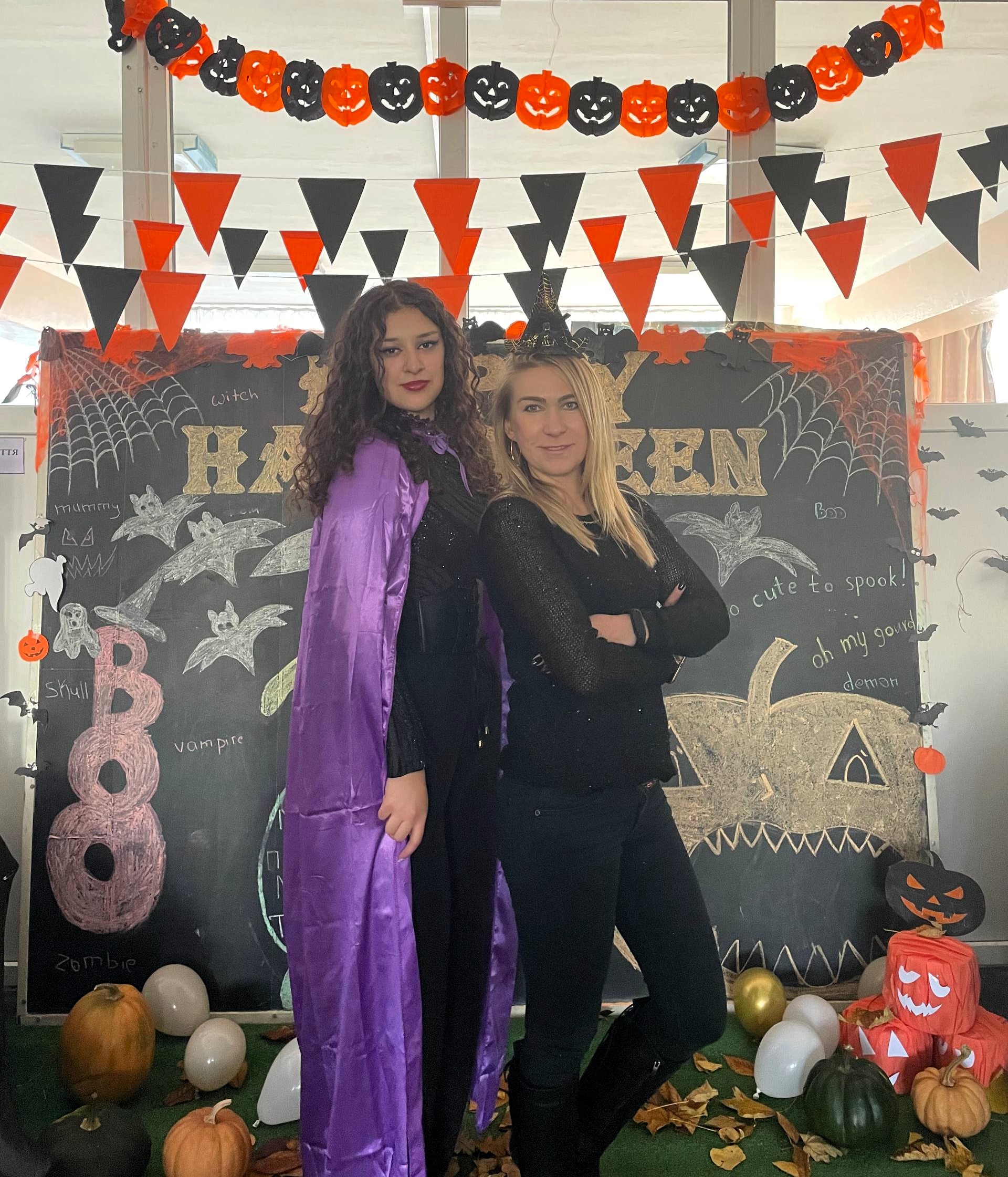 Святкування Геловіну в нашому коледжі стало справжнім вибухом емоцій та креативу. Атмосфера була неймовірно захопливою — фоє коледжу перетворилося на містичну алею з гарбузами, павутинням і тематичними декораціями, які створювали студенти власноруч. Конкурс костюмів вразив різноманіттям образів. Вирізання гарбузів і створення геловінських аксесуарів об’єднали студентів різних курсів у творчій співпраці. Переможці отримали солодкі призи та оплески! Організаторками заходу стали викладачки іноземної мови ЦК СЄМЛ.