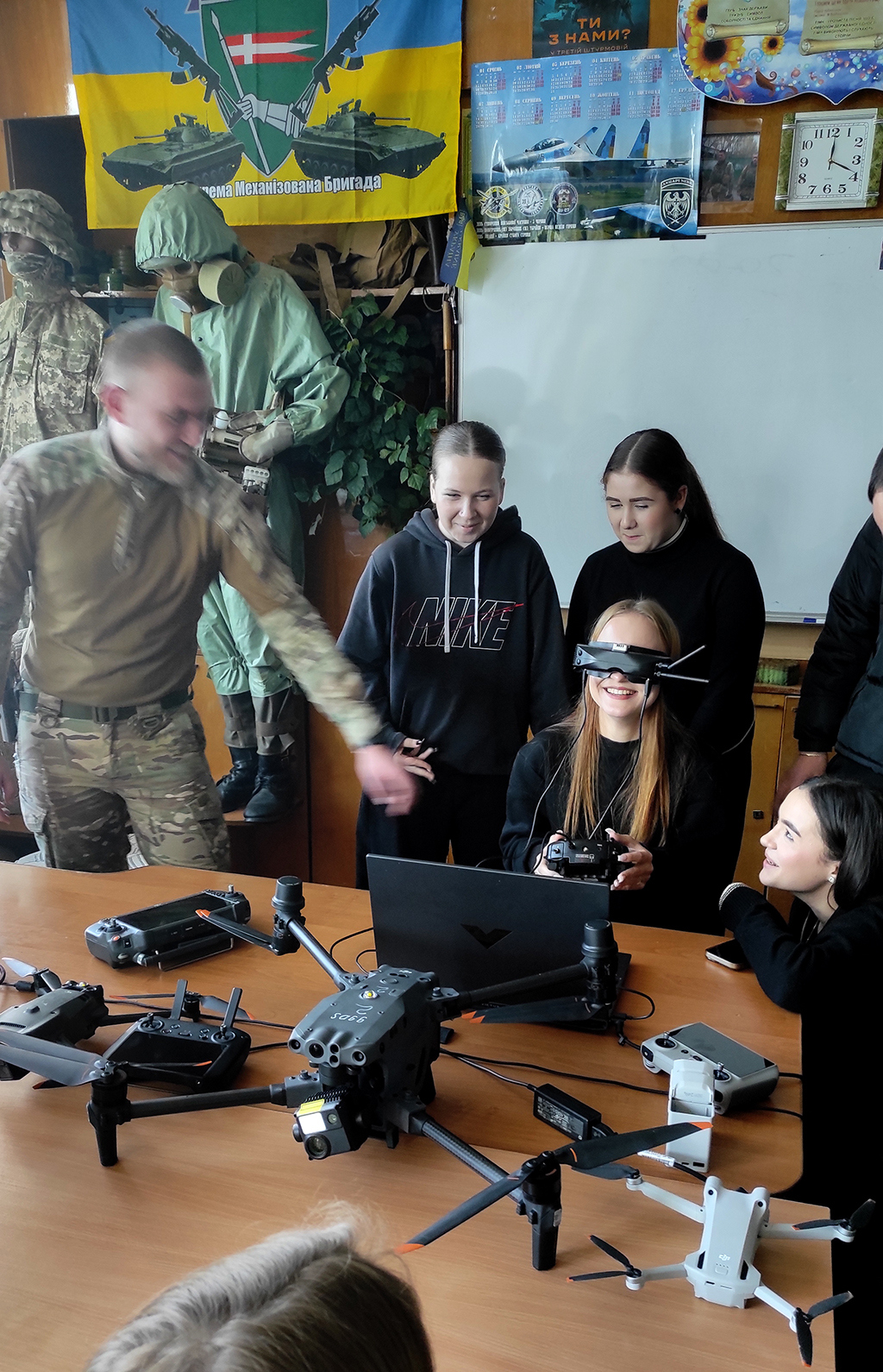 19 листопада наш коледж відвідали офіцери – командири підрозділів безпілотних систем 115 бригади територіальної оборони Житомирської області. Під час невимушеного, дружнього спілкування зі студентами – майбутніми правознавцями та правоохоронцями, вони запросили студентів-випускників доєднатися до Сил оборони у складі 115ОБрТрО на посадах штурмовиків або операторів БПЛА, розказали про умови служби та побуту. Студенти побачили бойову роботу наших воїнів під Бахмутом, застосування безпілотників-розвідників та ударних FPV-дронів на лінії бойового зіткнення та під час прикриття північного кордону нашого регіону.