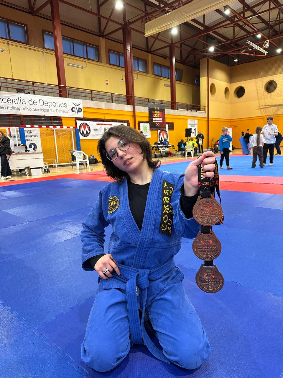 Надзвичайно приємно ділитися новинами про яскраві спортивні успіхи студентської молоді! Студентка ОПП «Товарознавство у митній справі» групи ТМС-21 ВСП "Житомирський торговельно-економічний фаховий коледж ДТЕУ" Артюх Анастасія Сергіївна — повернулася з Чемпіонату світу з Комбат Дзю-Дзюцу з трьома бронзовими медалями, гідно представивши Україну у складі національної збірної! Чемпіонат світу 2025 проходив з 26 листопада по 1 грудня в сонячному та гостинному Мадриді (Іспанія). Участь взяли найсильніші спортсмени світу, що змагалися у трьох складних та видовищних розділах: • Граунд-файт — боротьба з колін, де особливу роль відіграють техніка контролю та швидкість переходів; • Клоуз-контакт — жорсткі поєдинки у стійці з ударами колін, кидками, больовими й задушливими прийомами; • Фулл-контакт — максимальна динаміка та витривалість: удари руками і ногами в стійці та партері, складні больові та задушливі техніки. Попри високу конкуренцію серед дорослих спортсменок у ваговій категорії +68 кг, Анастасія проявила себе як зріла, вольова та технічно підготовлена бійчиня, продемонструвавши свої силу, вміння та неймовірну витримку. Її три впевнені «бронзи» — це результат багаторічної самовідданої праці, щоденних тренувань, сили духу та віри у свої можливості. Досягнення Анастасії — це не лише її особиста перемога, а й вагомий внесок у спортивний імідж коледжу та всієї України на міжнародній арені. Ми віримо, що попереду — нові вершини, нові чемпіонати і нові перемоги! Вітаємо нашу спортсменку та бажаємо натхнення, здоров’я й нових успіхів!